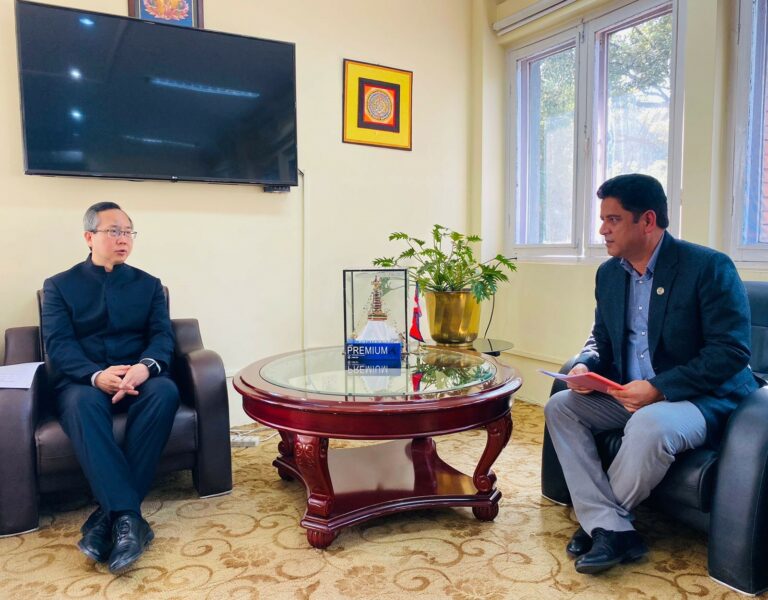 काठमाडौँ,१७ माघ । उद्योग, वाणिज्य तथा आपूर्तिमन्त्री दामोदर भण्डारी र नेपालका लागि चिनियाँ राजदूत चेन सोङबीच आज शिष्टाचार भेटवार्ता भएको छ ।