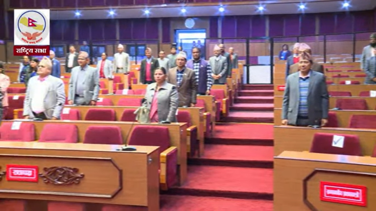 काठमाडौं, २३ माघ । संघीय संसदअन्तर्गत राष्ट्रियसभाको बैठक सुरु भएको छ । बैठक आज (सोमबार) बिहान ११ः५९ बजे नयाँ बानेश्वरस्थित संघीय संसद भवनमा सुरु भएको हो । बैठकमा राष्ट्रिय सभा अध्यक्ष गणेशप्रसाद तिमिल्सिनाले राष्ट्रपतिको कार्यालयबाट प्राप्त मन्त्रिपरिषद् सदस्यको कार्यभार तोकिएको सम्बन्धी पत्रको व्यहोरा पढेर सुनाउने छन्।