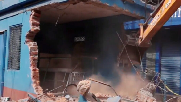 काठमाडौं, २४ माघ । काठमाडौं महानगरपालिकाले मैतीदेवीमा रहेको नेपाल प्रहरीको विटमा डोजर चलाएको छ । मैतीदेवी चोकमा फुटपाथ र सडक मिचेर निर्माण भएको विट नेपाल प्रहरीको समन्वयमा भत्काइएको महानगरपालिकाले जनाएको छ ।