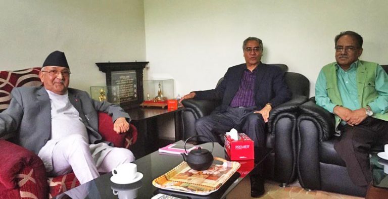 फागुन २५ गते हुने नयाँ राष्ट्रपतिको निर्वाचनका लागि राजनीतिक र गैरराजनीतिक व्यक्तिहरूको चर्चापरिचर्चा चलिरहेका बेला प्रधानमन्त्रीसहित तीन नेताले यसमा छलफल गरेका हुन्। माओवादी स्थायी समितिको बैठकले राष्ट्रपति निर्वाचनमा सकेसम्म राष्ट्रिय सहमति खोज्ने, नभए विचार मिल्ने समूहसँग जोडिने भन्ने निर्णय गरेको छ। त्यहीअनुरूप सोमबार तीन नेताहरूबीच छलफल भएको बताइएको छ।