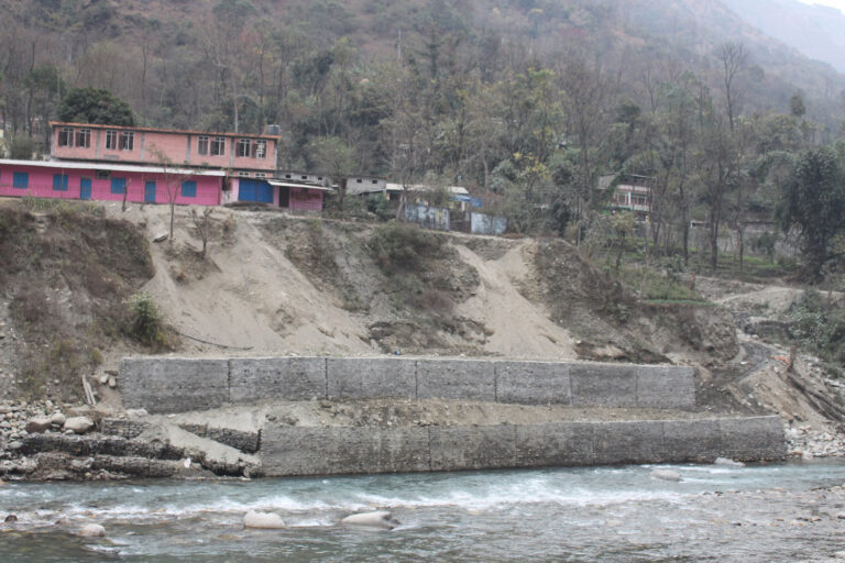 काठमाडौँ,२५ माघ । बेनी नगरपालिका–४ मसारमा कालीगण्डकी नदीको कटान र पहिरो नियन्त्रणका लागि निर्माण गरिएको मेसिनरी पर्खाल । ऊर्जा, जलस्रोत तथा सिँचाइ मन्त्रालयको सहयोगमा कटान र पहिरो नियन्त्रणका लागि पर्खाल निर्माण भएको हो । तस्बिर सन्तोष गौतम/रासस