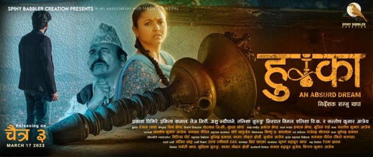 काठमाडौं,२७ माघ। आगामी चैत ३ लाई रिलिज मिति तोक्दै फिल्म ‘हुक्का एन एब्जर्ड ड्रिम’को फस्टलुक सार्वजनिक भएको छ । स्पाइनी बाबलर क्रिएसनले ह्यासट्याग नेपालसँग सहकार्य गर्दै निर्माण गरेको फिल्ममा शम्भु थापाको निर्देशन छ । फस्टलुकमा फिल्मका प्रमुख कलाकार प्रमिला खनाल, प्रकाश घिमिरे र तेज गिरीलाई स्थान दिइएको छ । फिल्ममा प्रमिला, प्रकाश र तेजसहित अशु न्यौपाने, तलिशा गुरुङ, निश्चल विमल, एलिशा विक र सन्तोषकुमार आत्रेयको पनि अभिनय छ ।