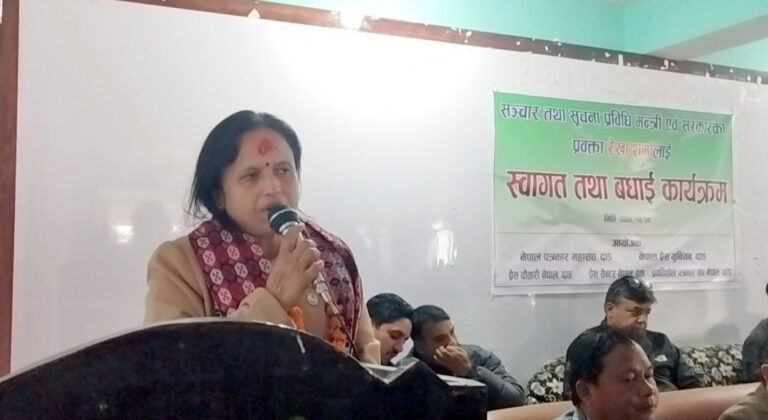 पत्रकार महासङ्घ दाङसहित जिल्लामा क्रियाशिल पत्रकारका संगठनद्वारा आयोजित स्वागत तथा बधाई कार्यक्रममा उहाँले सञ्चारसँग सम्बन्धित सबै कानुन संशोधन गरी समय सान्दर्भिक बनाउने समेत स्पष्ट पारिन् ।