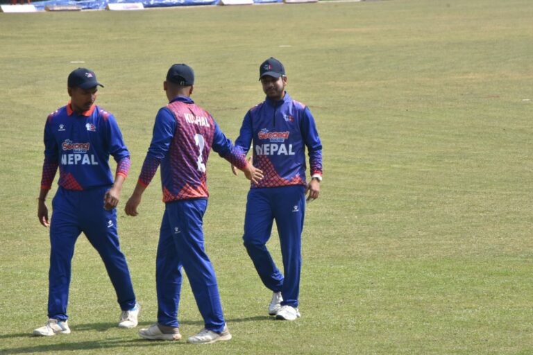 कीर्तिपुरस्थित त्रिवि मैदानमा भइरहेको खेलमा नेपालले टस जितरे यतिबेला फिल्डिङ् गरिरहेको हो।
