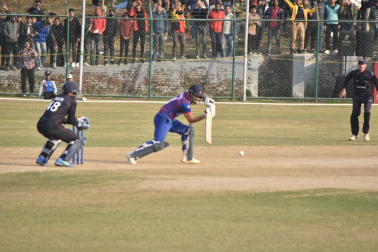२७५ रनको लक्ष्य पाएको नेपाल ताजा अवस्थामा ३७.५ ओभरमा ६ विकेट गुमाउँदै २२५ रनमा रहेको छ।