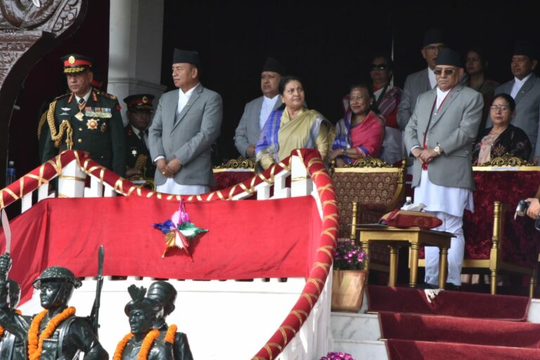 काठमाडौं, ६ फागुन । राष्ट्रपति विद्यादेवी भण्डारी महाशिवरात्रि तथा २६०औँ सेना दिवसका अवसरमा नेपाली सेनाद्वारा सैनिक मञ्च टुँडिखेलमा आयोजित विशेष समारोहमा सरिक भएकी छन् । सो अवसरमा राष्ट्रपति भण्डारीबाट सैनिक स्मारकमा पुष्पहार अर्पण गरी श्रद्धाञ्जली व्यक्त गर्नुका साथै नेपाली सेनाद्वारा अर्पण गरिएको सलामी ग्रहण गरिन् । राष्ट्रपति भण्डारी नेपाली सेनाका परमाधिपति हुन् । सेनाले महाशिवरात्रिको दिनलाई सेना दिवसका रूपमा मनाउँदै आएको छ । शास्त्रीय मान्यताअनुसार शिवलाई शान्ति र सुरक्षाको प्रतीकका रूपमा लिने गरिन्छ ।