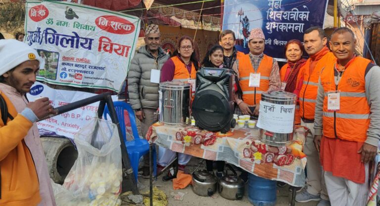 काठमाडौं, ६ फागुन । महाशिवरात्रिको अवसरमा दर्शनार्थीहरुलाई गुर्जोको चिया सेवा गरिएको छ । पशुपतिनाथ मन्दिरमा पूजा आराधना एवं दर्शन गर्न पुगेका भक्तजनहरुलाई आज गुर्जोको चिया सेवा गराईएको अभियन्ता कमलबहादुर राजलवटले जानकारी दिए ।