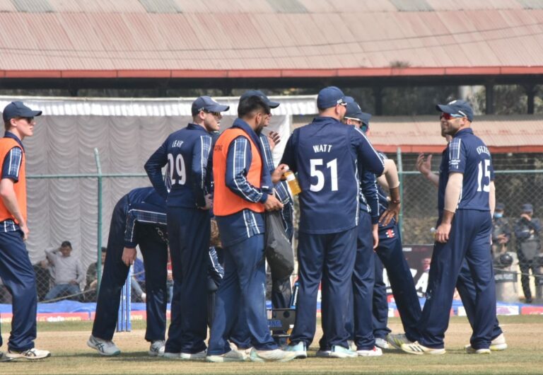 काठमाडौं, ९ फागुन । आइसिसी विश्वकप क्रिकेट लिग २ अन्तर्गत त्रिकोणात्मक एकदिवसीय सिरिजको अन्तिम खेलमा स्कटल्याण्डसँग खेलिरहेको नेपाललाई चौथो झट्का लागेको छ।