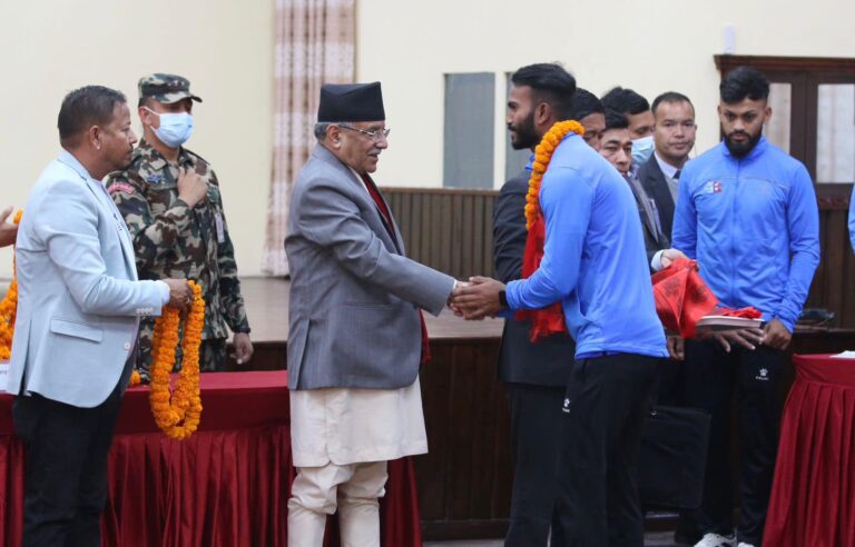 विजेता खेलाडीलाई प्रतिव्यक्ति दुईलाख पुरस्कार दिने प्रधानमन्त्री प्रचण्डको घोषणा
