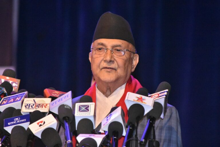 काठमाडौं, १४ फागुन । शनिबार राष्ट्रपतिको मनोनयमा दर्तापछि पहिलो पटक आइतबार सार्वजनिक कार्यक्रममा बोल्दै नेकपा एमालेका अध्यक्ष केपी शर्मा ओलीले प्रधानमन्त्री पुष्पकमल दाहाल ‘प्रचण्ड’लक्षित विभिन्न टिप्पणी गरेका छन्।