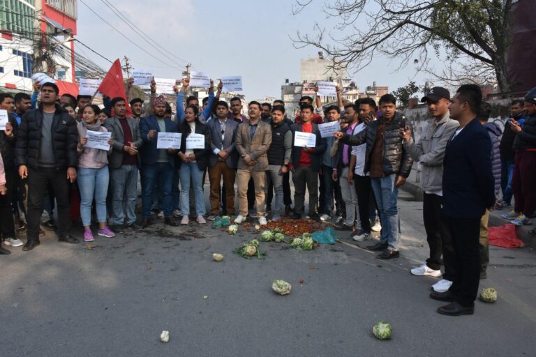 काठमाडौं, १७ फागुन । नेकपा एमालेको भातृ संगठन अनेरास्ववियूले तरकारी विषादीको परीक्षण रोकिएको भन्दै प्रर्दशन गरेको छ।