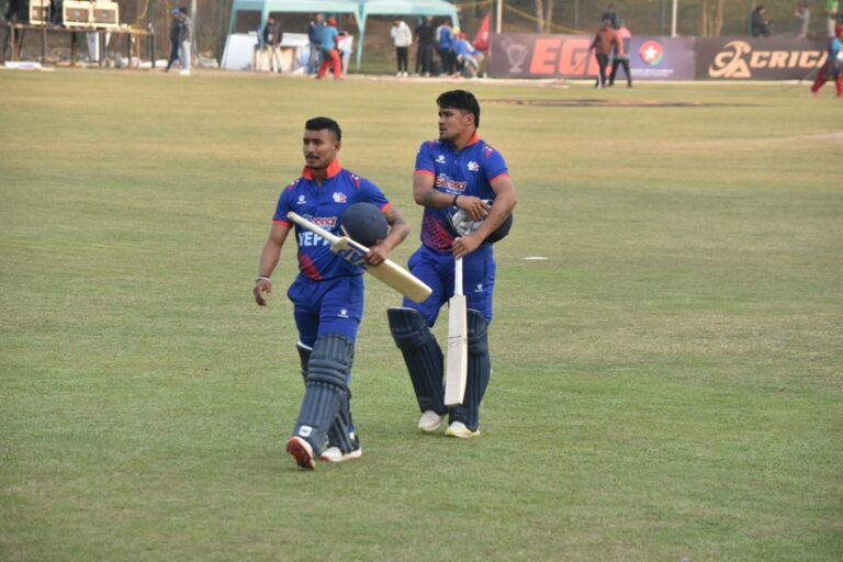नेपालका लागि कुशल मल्लले ६० रनको अर्धशतकीय पारी खेले। यस्तै, सन्दीप लामिछानेले २५ रन बनाउँदा आसिफ शेखले १७ रन जोडे।