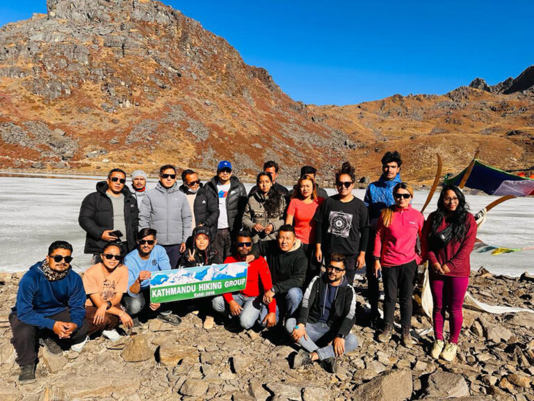 सिन्धुपाल्चोक, २१ फागुन । प्रख्यात धार्मिक स्थल भैरव कुण्डमा काठमाडौँबाट आएका हाइकिङ ग्रुपका सदस्यलगायत । अहिले भैरव कुण्ड आन्तरिक तथा बाह्य पर्यटकहरुको रोजाइमा पर्न थालेको छ । समुन्द्री सतहदेखि चार हजार २०० मिटर उचाइमा रहेको भैरवकुण्डमा जनैपूर्णिमाको दिन मेला लाग्ने भएता पनि अहिले बाह्रै महिना पर्यटक पुग्नेगरेका छन् । जसले गर्दा त्यहाँको चहलपहल बढेको छ ।
