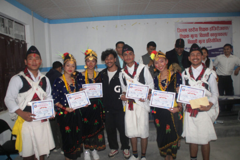 बेनी, २१ फागुन । शिक्षा विकास तथा समन्वय एकाई म्याग्दीले आयोजना गरेको अन्तरविद्यालय स्तरीय शिक्षकहरुको नृत्य प्रतियोगितामा विजयी हुन सफल बेनी सामुदायिक माविका शिक्षक कलाकार । विजेता विद्यालयलाई नगद रु पाँच हजारको साथमा प्रमाणपत्रद्वारा पुरस्कृत गरिएको छ । रासस