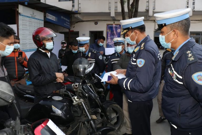 काठमाडौं, २२ फागुन । होली पर्वलाई मध्यनजर गरी आज काठमाडौं उपत्यकाको ट्राफिक जाँचमा कडाइ गरिएको छ ।आज उपत्यकामा युवायुवतीले होली पर्व मनाउने क्रममा मादक पदार्थ सेवन गरेर तथा ट्राफिक नियम उल्लङ्घन गरेर सवारी हाँक्नसक्ने भएकाले ट्राफिक प्रहरीले जाँचमा कडाइ गरेको हो ।