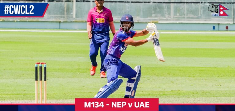 काठमाडौं, २२ फागुन । आइसिसी विश्वकप लिग- २ त्रिकोणात्मक सिरिज अन्तर्गत युएईविरूद्ध नेपालले २ सय ३० रनको लक्ष्य दिएको छ। टस जितेर पहिले ब्याटिङ गर्दै खराब सुरुवात गरेको नेपाललका लागि भीम सार्कीले उत्कृष्ट प्रदर्शन गर्दै नेपाललाई सम्मानजनक स्कोरमा पुर्याए।