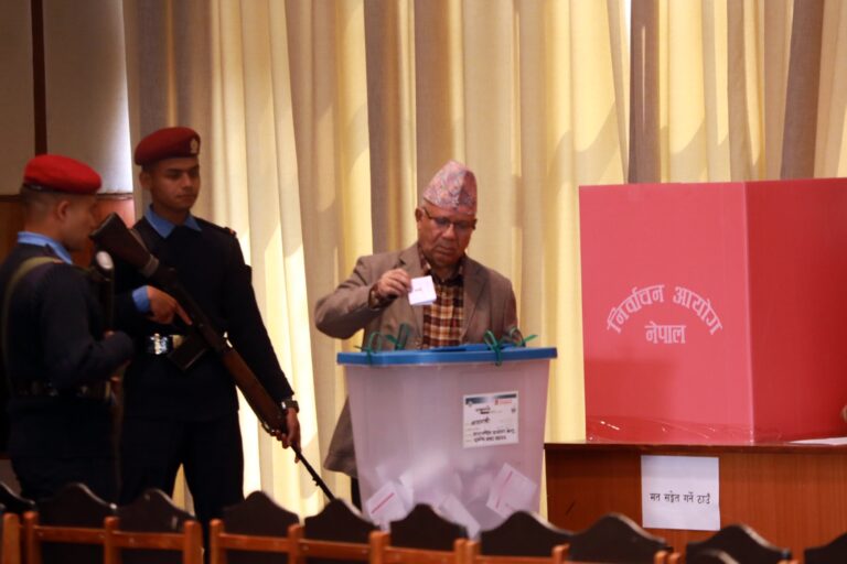 काठमाडौं, २५ फागुन । नेकपा (एकीकृत समाजवादी) का अध्यक्ष माधवकुमार नेपालले राष्ट्रपति पदको निर्वाचनमा मतदान गरेका छन् । नयाँ बानेश्वरस्थित संसद् भवनको ल्होत्से कक्षमा राखिएको सङ्घीय सांसद मतदान केन्द्रमा उनले मतदान गरेका हुन् ।