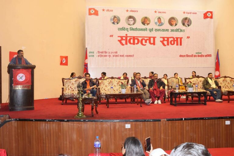 काठमाडौं, २५ फागुन । नेपाल विधार्थी संघ(नेविसंघ)ले स्वतन्त्र विधार्थी युनियनको पूर्व सन्ध्यामा ‘संकल्प सभा’ कार्यक्रमको आयोजना गरेको छ।