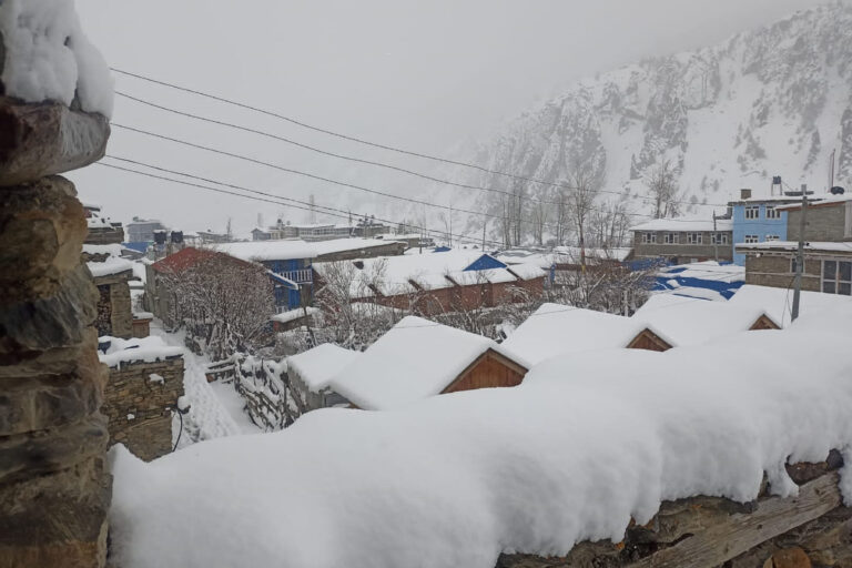 मनाङ,२६ फागुन । मनाङमा भएको हिमपात । हिमपातका कारण यहाँको जनजीवन कष्टकर बनेको छ । तस्बिर ः नवीन लामिछाने÷रासस
