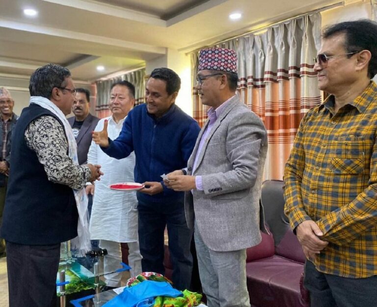 आइतबार धुम्बाराहीमा रहेको राप्रपाको पार्टी कार्यालयमा अध्यक्ष राजेन्द्प्रसाद लिङदेनले आचार्यलाई टिका र खादा लगाई पार्टीमा स्वागत गरेका छन्।