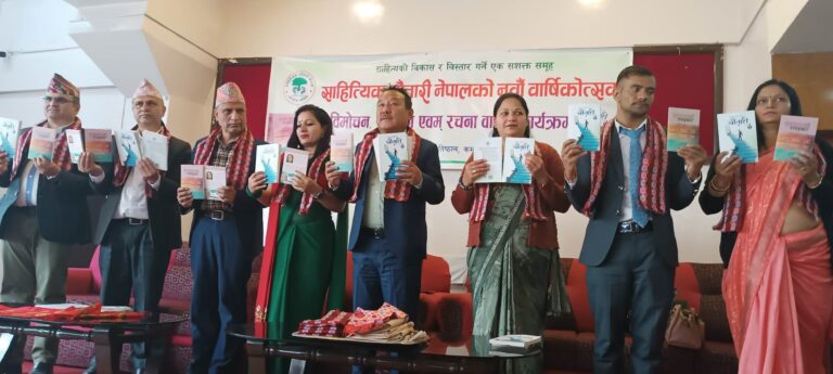 काठमाडौं, २८ फागुन । नेपाली साहित्यको विकास र विस्तारसँगै सामाजिक कार्यमासमेत क्रियाशील संस्था साहित्यिक चौतारी नेपालको ९औं वार्षिकोत्सव सम्पन्न भएको छ । साहित्यिक चौतारी नेपालका केन्द्रीय अध्यक्ष गीता भण्डारीको अध्यक्षता तथा नेपाल प्रज्ञाप्रतिष्ठानका कूलपति भुपाल राईको प्रमुख आतिथ्यतामा कार्यक्रम काठमाडौंमा सम्पन्न भएको हो ।