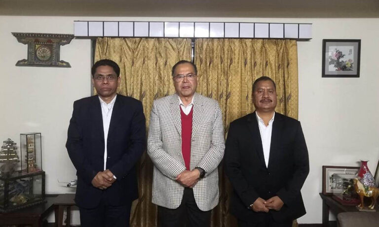 काठमाडौं, २८ फागुन । नेकपाका महासचिव नेत्रविक्रम चन्द ‘विप्लव’ले नेकपा (एकीकृत समाजवादी) का सम्मानित नेता एवम् पूर्वप्रधानमन्त्री झलनाथ खनालसँग भेटवार्ता गरेका छन् । खनाललाई भेट्न विप्लव पार्टीका नेता खड्गबहादुर विश्वकर्मा ‘प्रकाण्ड’ लाई लिएर डल्लु पुगेका थिए ।