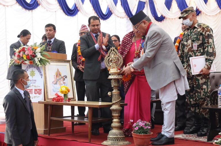 काठमाडौं, २९ फागुन । प्रधानमन्त्री पुष्पकमल दाहाल ‘प्रचण्ड’ ले पद्मोदय माध्यामिक विद्यालयको हिरक महोत्सवको उद्घाटन गरेका छन् । आज (सोमबार) पद्मोदय माध्यामिक विद्यालयको ७७औं वार्षिक उत्सव कार्यक्रमलाई प्रधानमन्त्री प्रचण्डले उद्घाटन गरेका हुन् ।