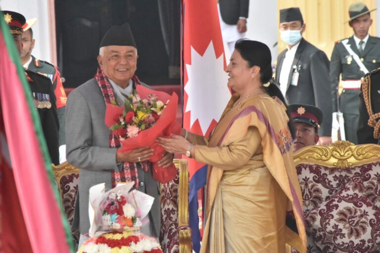 संघीय संसद्बाट भारी मतसहित राष्ट्रपतिमा निर्वाचित पौडेलले सोमबार मुलुकको सर्वोच्च पद राष्ट्राध्यक्षको जिम्मेवारी सम्हालेका छन्। राष्ट्रपति भवन शीतल निवासमा सोमबार दिउँसो आयोजना गरिएको विशेष समारोहमा कायममुकायम प्रधानन्यायाधीश हरिकृष्ण कार्कीसमक्ष पौडेलले पद तथा गोपनीयताको शपथ लिएका हुन्। त्यसलगतै निवर्तमान राष्ट्रपति विद्यादेवी भण्डारीलाई बिदा गर्दै पौडेलले राष्ट्राध्यक्षको जिम्मेवारी सम्हालेका छन्।