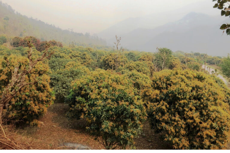 काठमाडौँ, २ चैत । धनकुटा नगरपालिका–९ स्थित छिम्सुवा बेँसीमा किसानले व्यावसायिक रुपमा गरेको आँपखेती बगैँचामा ढकमक्क फुलेको आँप । जङ्गली बँदेल र बाँदरले अन्नबाली खाएर हैरान बनाउन थालेपछि यहाँका ३५ घर परिवारले विसं २०५३ देखि आँप रोप्न सुरु गरेको उनीहरुले बताए । रासस