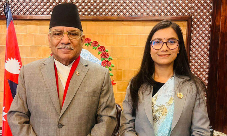 काठमाडौं, ४ चैत्र । काठमाडौं क्षेत्र नम्बर २ बाट निर्वाचित राष्ट्रिय स्वतन्त्र पार्टीकी सांसद सोविता गौतमले प्रधानमन्त्री पुष्पकमल दाहालसँग भेटवार्ता गरेकी छिन् । सो क्रममा उनले मूलपानीमा निर्माणाधीन क्रिकेट रंगशालालाई पूर्णता दिनुपर्ने विषय उठाएकी छिन् ।