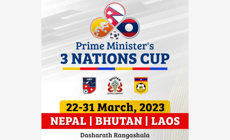 चैत, ८ काठमाडौं । प्रधानमन्त्री थ्री नेसन्स कपमा नेपालले आज लाओसको सामना गर्दैछ । त्रिपुरेश्वरस्थित दशरथ रंगशालामा हुने खेल साँझ ६ बजे सुरु हुनेछ ।