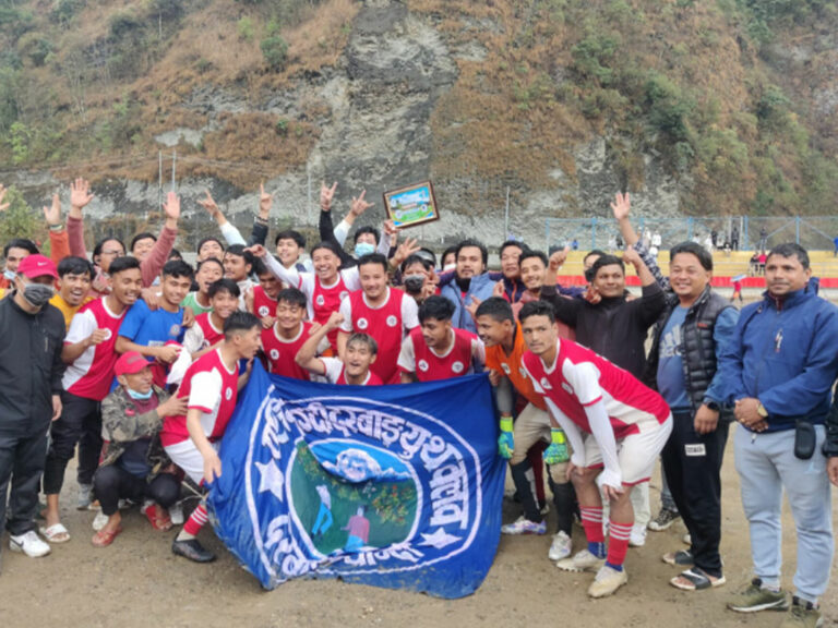 काठमाडौँ, ८ चैत । म्याग्दी सदरमुकाम बेनीमा सम्पन्न प्रथम ‘म्याग्दी कप, २०७९’ आमन्त्रित म्याग्दी लिग फुटबल प्रतियोगिताको उपाधि पश्चिम म्याग्दी युवा क्लबले जितेको छ । मङ्गलबार सम्पन्न फाइनल खेलमा कालीपुल युनाइटेड क्लबलाई पराजित गर्दै पश्चिम म्याग्दीले बाजी मारेको हो ।