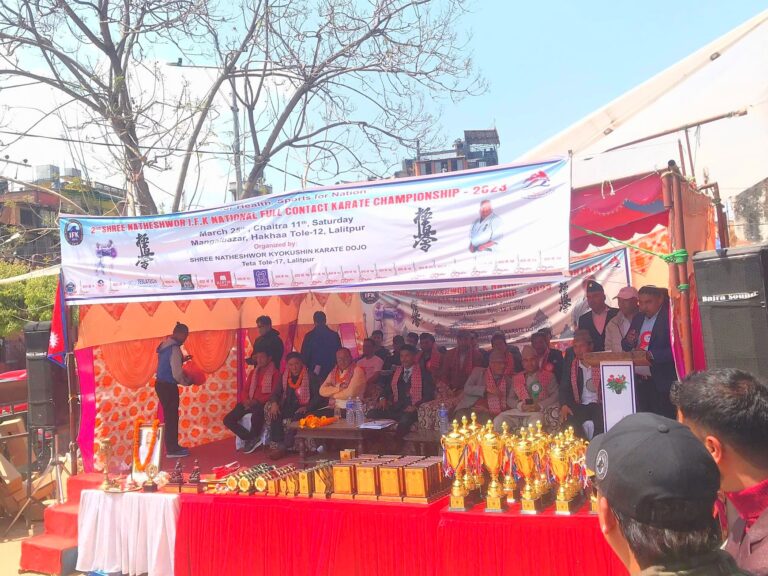 -राजिव खड्का : ललितपुर : श्री नाथेश्वर क्योकुशिन कराँते डोजोले आयोजना गरेको दोस्रो श्री नाथेश्वर आइ एफ के फुल कन्ट्याक्ट कराँते प्रतियोगिता २०७९ सम्पन्न भएको छ । चैत्र ११ गते एक दिनको लागि संचालन भएको प्रतियोगीता उद्घाटन र समापन गरि दुइ चरनमा विभाजन गरिएको थियो ।