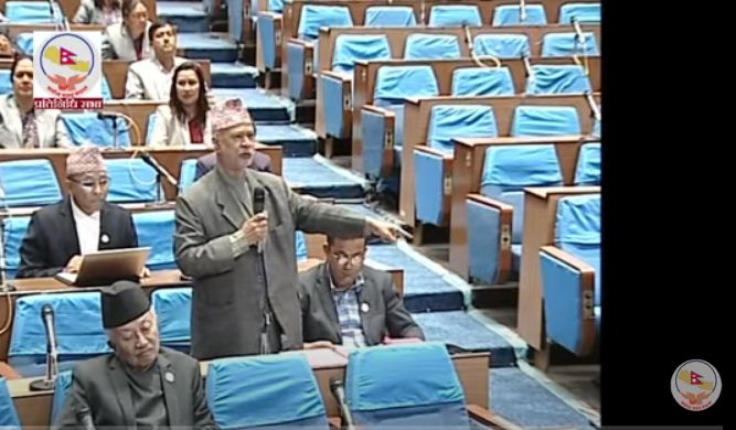 उनले भने ‘प्रधानमन्त्री जी संसदमा रमाउँदै हल्लिदै आउनुहुन्छ सत्तापक्षका सचेतक हरुले हतपत्त लुकाएर चेम्वरमा लैजानुपर्छ किनभने उहाँले प्रस्तुत गनुपर्ने विधयेक आफुले प्रस्तुत नगरेर मन्त्रीले प्रस्तुत गर्छन’ प्रधानमन्त्री संसदमा पनि आउने हल्ल्निे जाने तर सरकार र मन्त्रीहरु संसदप्रती जिम्मेवार नहुने ,