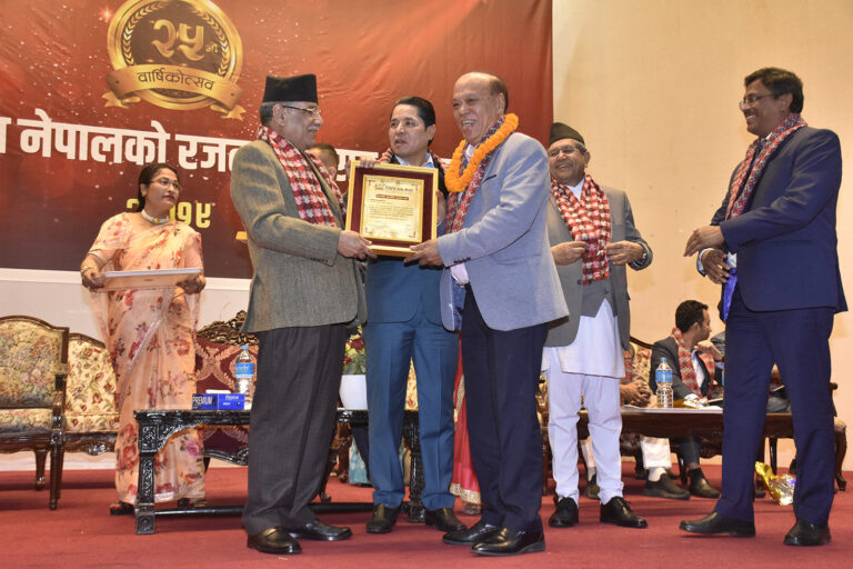 काठमाडौं, १७ चैत्र । रिपोर्टर्स क्लब नेपालले विभिन्न व्यक्तिव्यहरुलाई सम्मान गरेको छ । क्लबले आफ्नो २५औं वार्षिकोत्सव (रजत महोत्सव) को अवसरमा आयोजित विशेष समारोहमा विभिन्न क्षेत्रमा योगदान पुर्याएका व्यक्तित्वहरुलाई प्रधानमन्त्री पुष्पकमल दाहालको हातबाट सम्मान गराएको हो ।