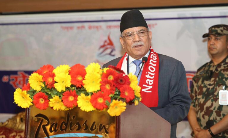 ‘हिमाल, तराईदेखि पहाडसम्म सबैतिर संरचना निर्माण गर्न सक्ने हो र भौतिक पूर्वाधारको विकास गर्ने हो भने नेपाल संसारकै निम्ति अन्तराष्ट्रिय स्तरमा खेलको हब हुने ठाउँ हो,’– प्रधानमन्त्री प्रचण्डले भने ।