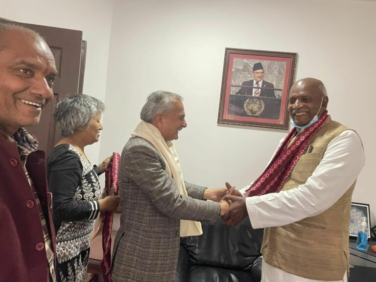 काठमाडौं, १८ चैत्र । नवनियुक्त महिला,बालबालिका तथा ज्येष्ठ नागरिक मन्त्री महिन्द्र राय यादवलाई बाबुराम भट्टराई र हिसिला यमीले बधाई दिएका छन् । नेपाल समाजवादी पार्टीका नेता हुन् । यादवले नेकपा (माओवादी केन्द्र) को चु्नाव चिन्ह लिएर सर्लाही–२ बाट निर्वाचनमा विजयी भएका थिए ।