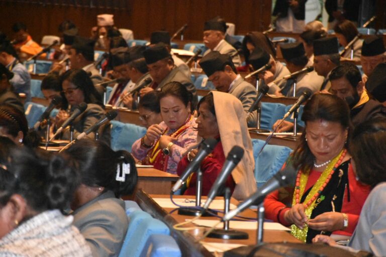 काठमाडौं, १९ चैत्र । सभामुखको तजबिजी अधिकार खोस्ने प्रस्ताव फिर्ता भएको छ। आइतबार बसेको प्रतिनिधिसभाको बैठकले सभामुखको तजबिजी अधिकारी खोस्ने संशोधन विधेयक फिर्ता लिएको हो।