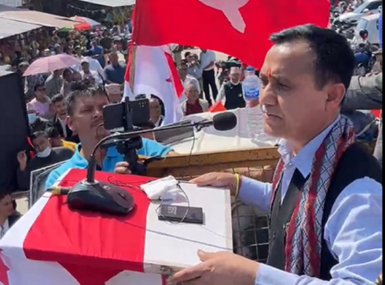 साथै, राष्ट्रिय स्वतन्त्र पार्टीका सभापति रवि लामिछानेले जनतालाई धोका दिएको उनको भनाई छ । नो नट अगेनको नारा लिएर गत मंसिर ४ को निर्वाचन जितेका लामिछाने उनै प्रचण्डको क्याविनेटको मन्त्री बनेको उनको आरोप छ । रविले अहिलेको उपनिर्वाचनमा नो नट अगेनको नारा ल्याउन नसक्ने उनले बताए । ‘तपाई अझैं नो नट अगेन भन्न सक्नुहुन्छ ?’ भनी प्रश्नसमेत गरे ।