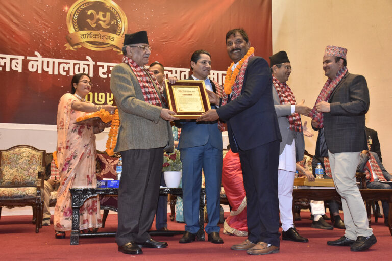 काठमाडौं, २२ चैत्र । पत्रकार एवम् शिक्षासेवी रामहरि सिलवाल सम्मानित भएका छन् । रिपोर्टर्स क्लब नेपालको २५औं वार्षिकोत्सव (रजत महोत्सव) को अवसरमा काठमाडौंमा आयोजित एक समारोहका बीच सिलवाल प्रधानमन्त्री पुष्पकमल दाहालको हातबाट सम्मानित भएका हुन् ।