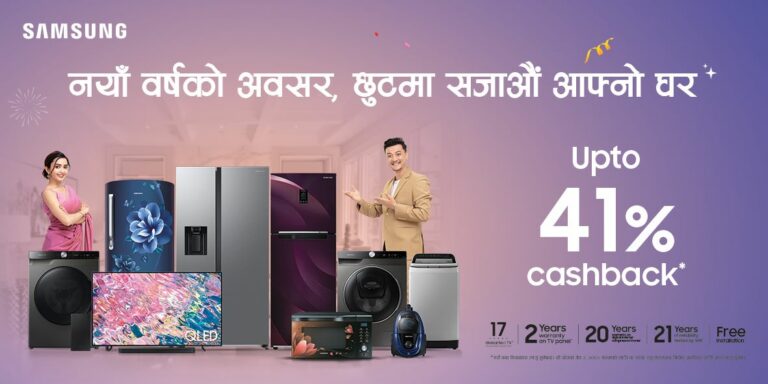 काठमाडौं, २२ चैत्र । नेपालको सबैभन्दा लोकप्रिय इलेक्ट्रोनिक्स ब्रान्ड सामसङले आउन लागेको नयाँ वर्ष २०८० को अवसरमा सामसङका विभिन्न इलेक्ट्रोनिक उत्पादनहरू टिभीदेखि होम अपलायन्सहरूमा नयाँ वर्ष अफर घोषणा गरेको छ।