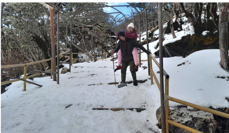 काठमाडौँ, २३ चैत । ताप्लेजुङको प्रसिद्ध धार्मिकस्थल पाथीभरा देवीको दर्शन गरेपछि मङ्गलबार यातायातको साधन चढ्ने काफ्लेपाटीसम्म भक्तजनलाई बोकेर ल्याइँदै । पाँच किलो मिटर उकालो पैदल मार्ग हिँडेपछि पाथीभरा देवीको दर्शन गर्न सकिन्छ । तस्बिरः दिलकुमार लिम्बू/रासस