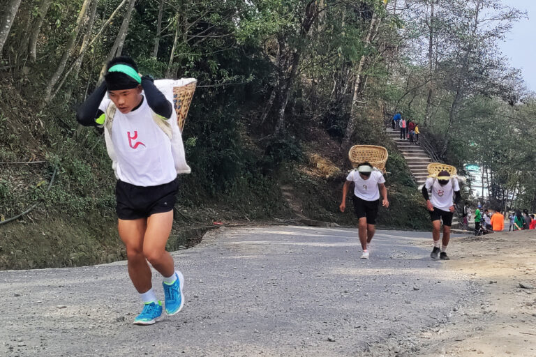 ताप्लेजुङ, २५ चैतः ताप्लेजुङमा जारी औद्योगिक कृषि तथा पर्यटन मेलामा आज आयोजित डोको क्यारी रन प्रतियोगितामा सहभागीहरु दौडिदै । तस्बिरः सन्तोष पुर्कुटी/रासस