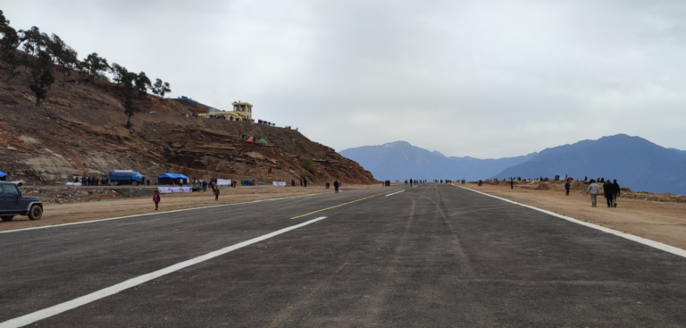 सशस्त्र द्वन्द्व तथा राजनीतिक दलका स्थानीय नेताबीचको खिचातानीका कारण विमानस्थल ३९ वर्षसम्म पनि निर्माण सम्पन्न हुन सकेको थिएन । विसं २०४२ मा जिल्ला विकास समितिको रु एक लाखको लागतमा विमानस्थलको काम थालनी गरिएको थियो । माओवादी जनयुद्धका कारण २०५८ देखि २०६३ सालसम्म यो आयोजनाको कुनै पनि काम अघि बढ्न सकेन । लामो समय निर्माणको जिम्मा लिने ठेकेदारसमेत नपाएको यो आयोजनाका लागि जिल्ला विकास समितिले रकम छुट्याए पनि दुर्गम भेगमा भएका कारण इञ्जिनियर नजाने, नबस्ने गरेकाले पनि लामो समय यसको निर्माण अवरुद्ध भयो । विसं २०६३ पछि मात्रै स्थानीय समिति निर्माण गर्दै यो आयोजना अघि बढाउने कार्य थालिए पनि बीचबीचमा दलबीचको आन्तरिक किचलोका कारण काम राम्ररी अगाडि बढ्न सकेन । दलका प्रतिनिधिको किचलोका कारण २०७१ सालसम्म अवरुद्ध बनेको यो विमानस्थलको निर्माण २०७१ साउनदेखि मात्रै अघि बढेको थियो ।