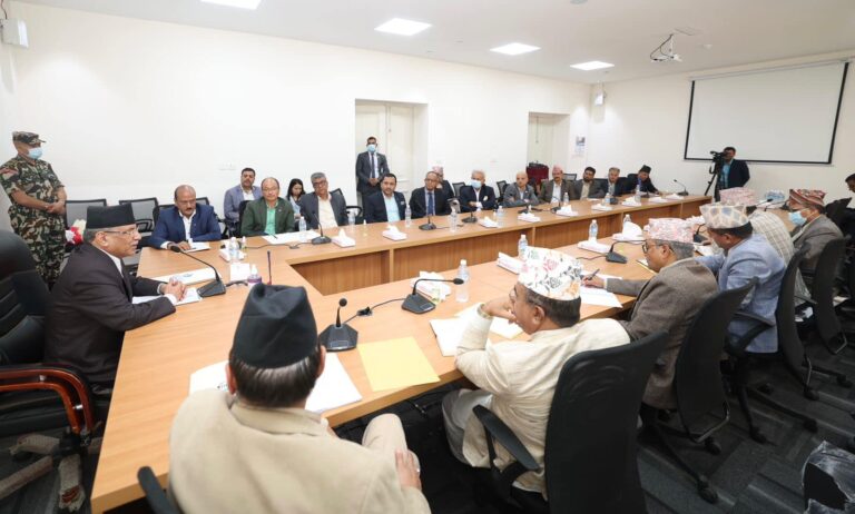 ‘मैले नै यो बैठकको आयोजना गरेको हुँ। अर्थतन्त्रमा देखा परेको दवावलाई कम गर्न लगातार छलफलमा छौँ। बैंकको ब्याजदर घटाउने उपायहरू खोजिरहेका छौँ। हामी छिट्टै एउटा निष्कर्षमा पुग्छौं,’– प्रधानमन्त्री प्रचण्डले भने ।
