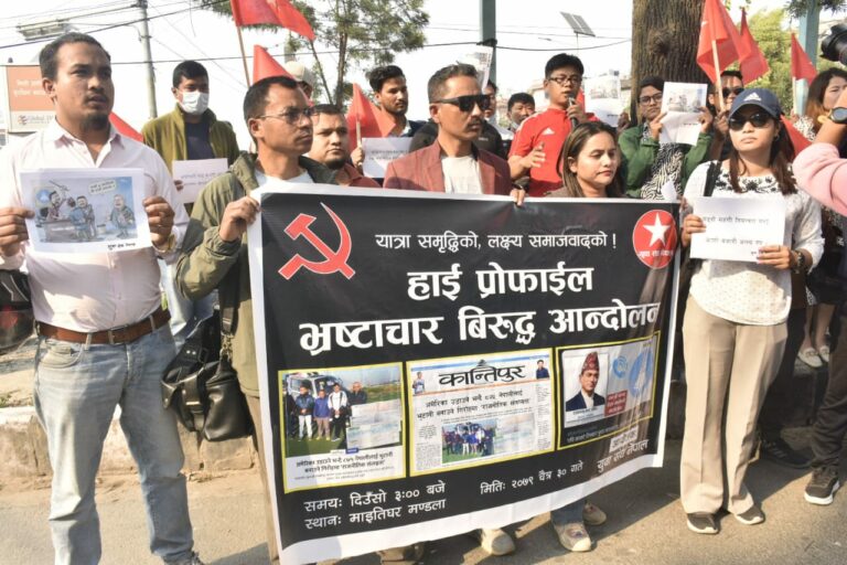 काठमाडौं, ३० चैत्र । नेकपा (एकीकृत समाजवादी) को भातृ संगठन युवा संघले हाई प्रोफाईल भ्रष्टाचारविरुद्ध प्रदर्शन गरेको छ ।