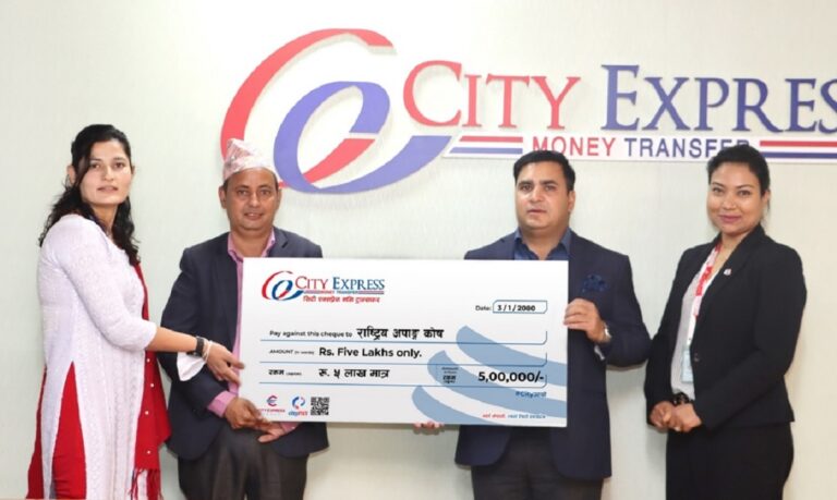 सिटी एक्सप्रेस मनी ट्रान्सफरले राष्ट्रिय अपाङ्ग कोषसँग सहकार्य गरी वैदेशिक रोजगारीका क्रममा अपाङ्गता भएकाहरूलाई सेवा पुर्याउने उदेश्यले कोषलाई उक्त रकम सहयोग गरेको हो।