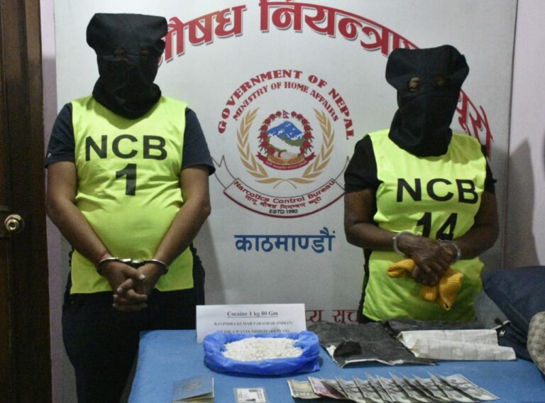 काठमाडौं, ७ बैशाख । नेपाल प्रहरीले लागूऔषध कोकिन १ केजी ८० ग्रामसहित दुई जना विदेशी नागरिकलाई पक्राउ गरेको छ।
