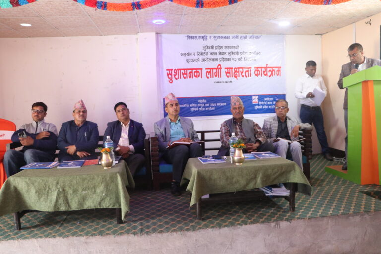 गुल्मी, ८ वैशाख । विकास समृद्धि सुशासनका लागी हाम्रो अभियान भन्ने मुल नाराका साथ लुम्बिनी प्रदेश आन्तरिक,कानुन तथा सहकारी मन्त्रालयको सहयोग र रिपोर्टर्स क्लव नेपाल लुम्बिनी प्रदेश कार्यालय बुटवलको आयोजनामा सुशासनका लागी साक्षरता कार्यक्रम प्रदेशको पहाडी जिल्ला गुल्मीमा सम्पन्न भएको छ ।