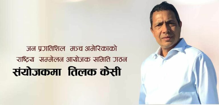 काठमाडौं, ९ वैशाख । जन प्रगतीशील मञ्चको राष्ट्रिय सम्मेलन आयोजक समिति गठन भएको छ । तिलक केसीको संयजकत्वमा अप्रिल १५ तारिकका दिन मञ्चको राष्ट्रिय सम्मेलन आयोजक समिति गठन गरिएको हो ।